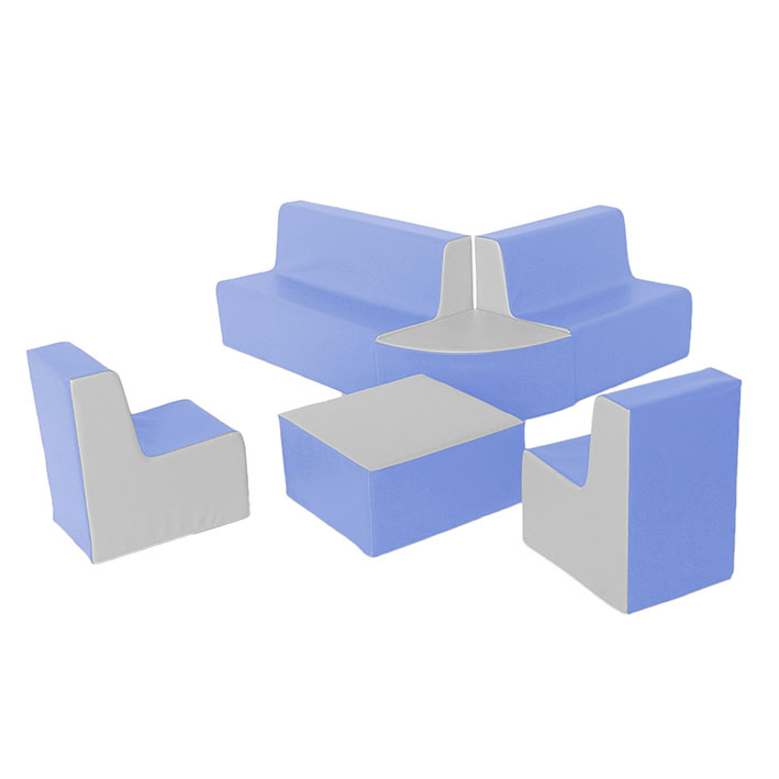 Mobiliario foam (mobiliario relleno de espuma) recubierto de PVC, cumpliendo con todas las normativas europeas: EN-71, garantizando un producto no tóxico, y UNE 23-727, que hace referencia al material ignífugo con calificación M2. Los materiales son antialérgicos, antibacterias y fácilmente lavables con agua y jabón, de esta forma nos ajusatamos a las necesidades de guarderías, esuelas y centros para que puedan hacer un uso diario de el mobiliario de espuma, sin preocuparse del deterioro de la pieza.